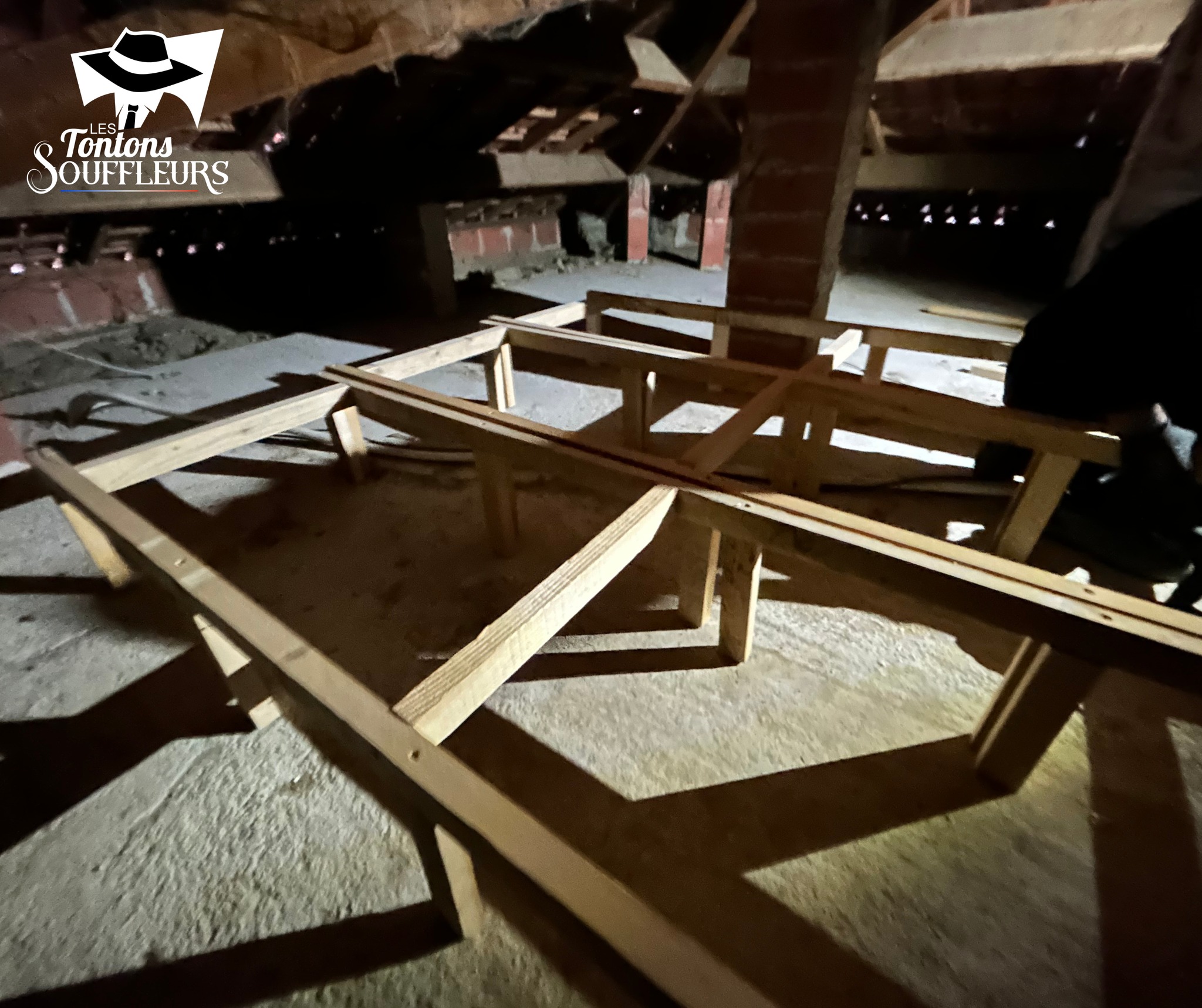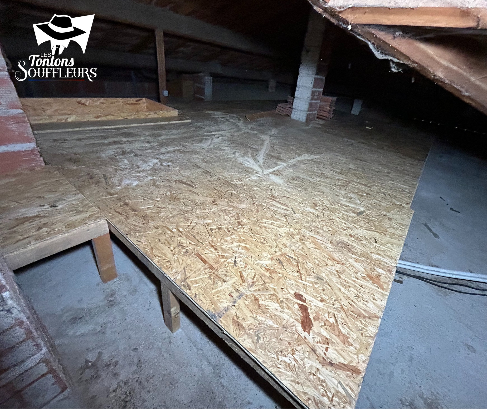 Dans une maison située rue de Lardenne à Toulouse (31100), nos équipes de Les Tontons Souffleurs ont réalisé la construction d’un plancher technique de stockage en combles.