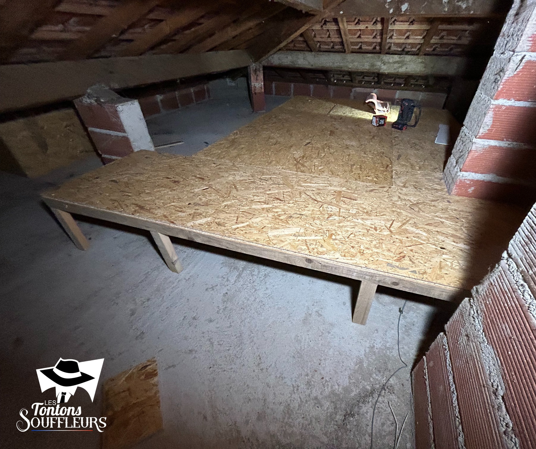 Résultat : un plancher solide permettant d’utiliser les combles comme espace de rangement, sans risque pour la structure.