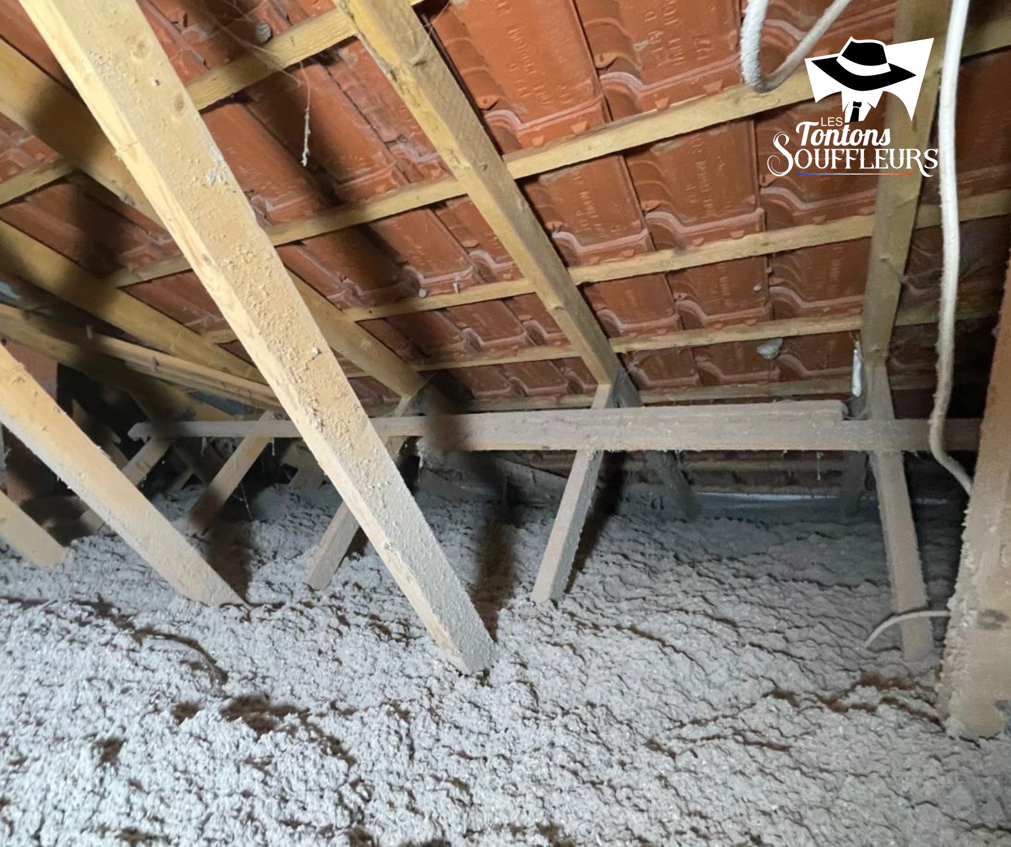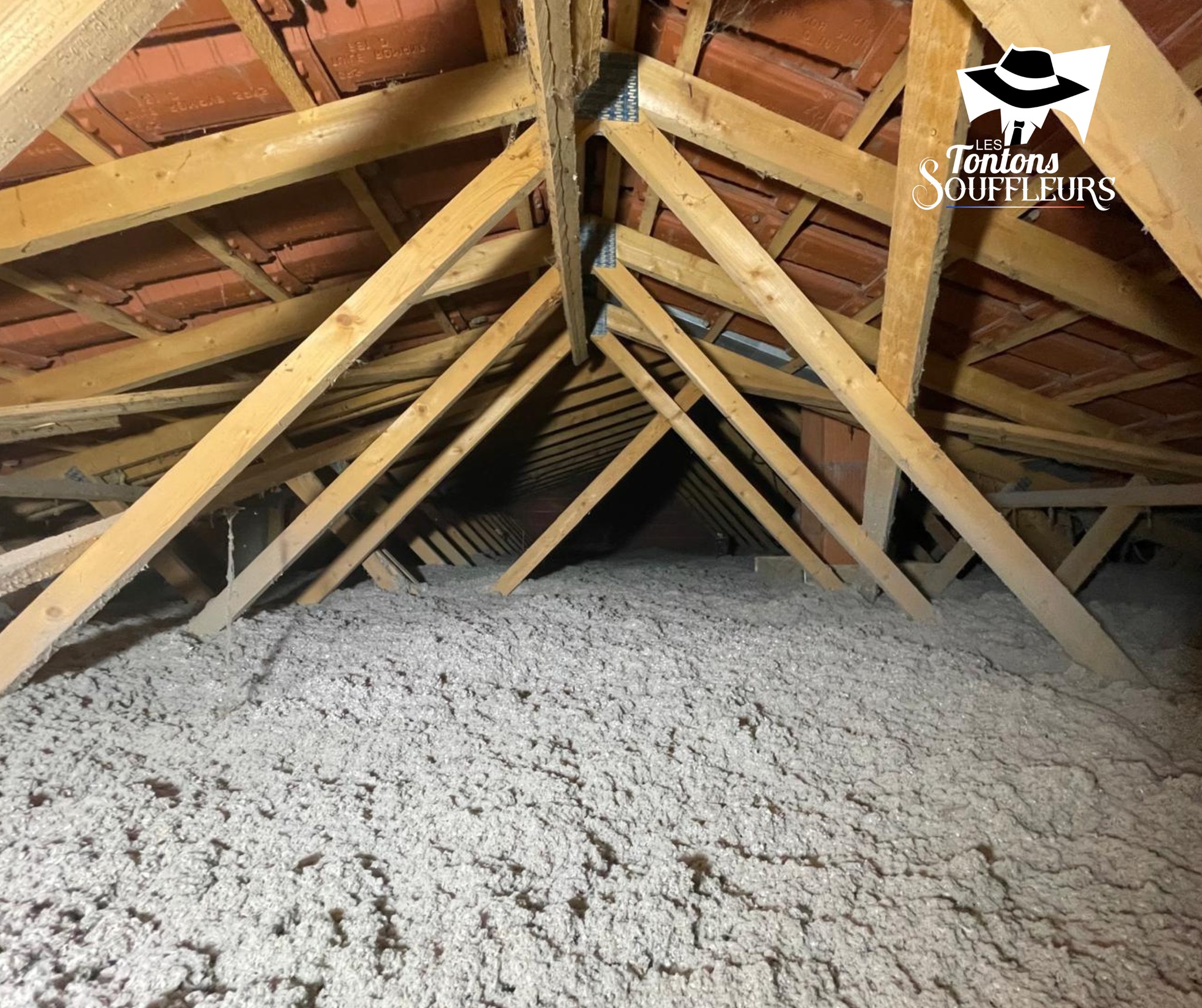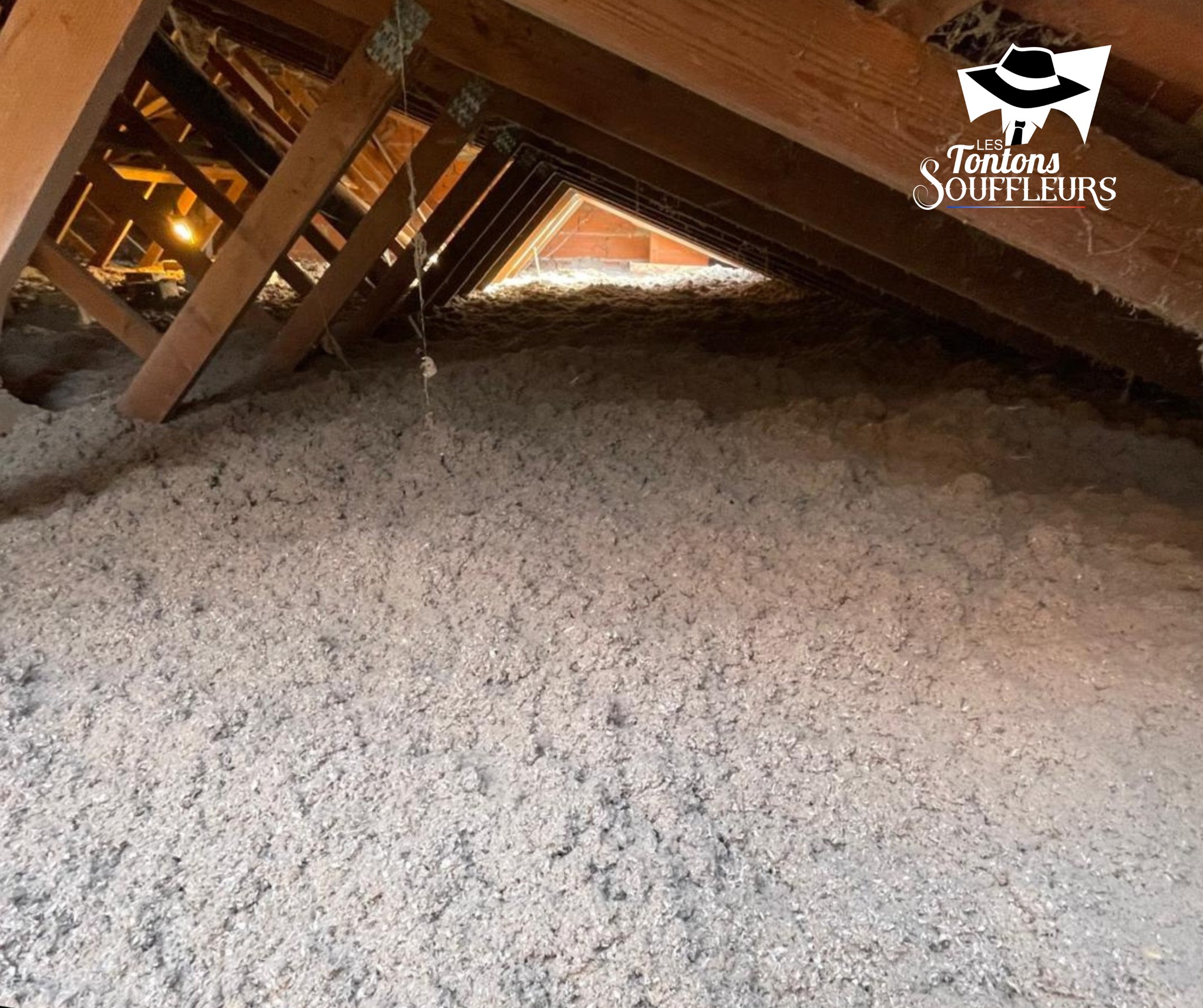 Heureusement, Les Tontons Souffleurs sont là pour apporter leur expertise et leur bonne humeur ! 🎩 Notre mission : souffler une épaisse couche de ouate de cellulose, un matériau biosourcé, résistant, durable et performant sur le plan thermique et acoustique. 🌿🔇