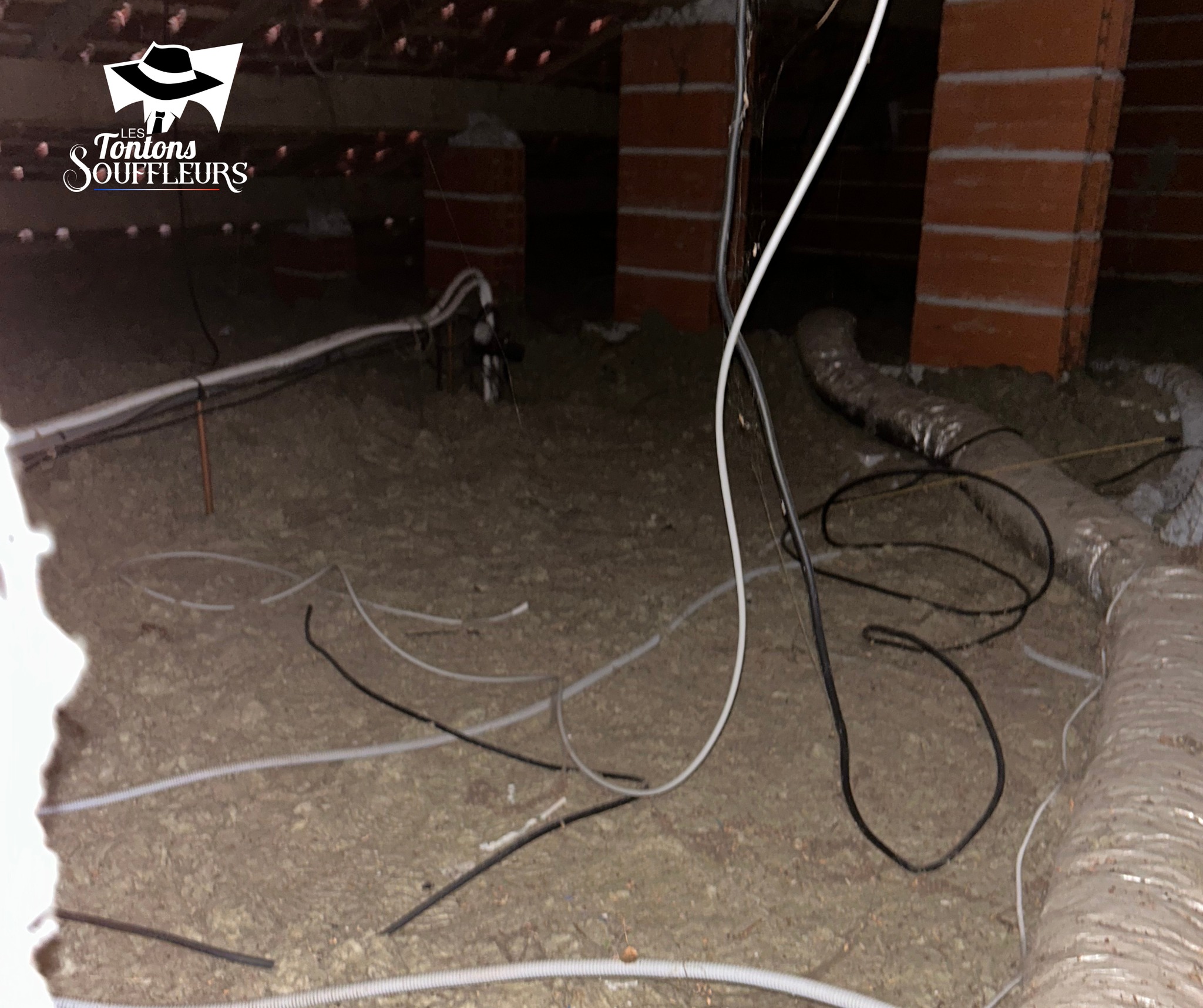 Avant toute nouvelle pose d’isolant, il est essentiel de repartir sur une base saine. L’ancienne isolation en laine de roche, posée depuis plusieurs années, s’était tassée et avait perdu une grande partie de son efficacité thermique. Une isolation dégradée peut entraîner des ponts thermiques, des pertes de chaleur importantes en hiver et une surchauffe des combles en été.