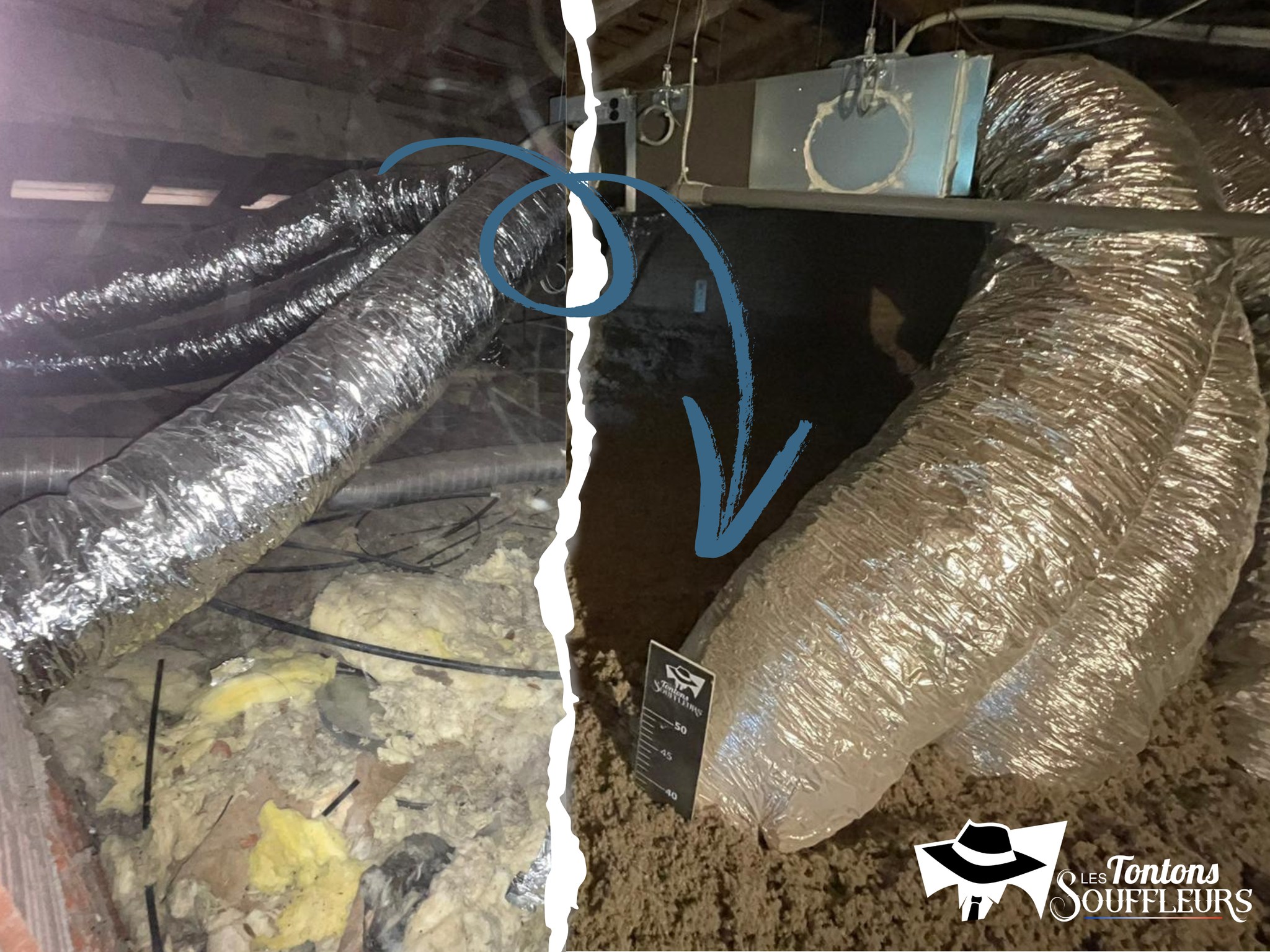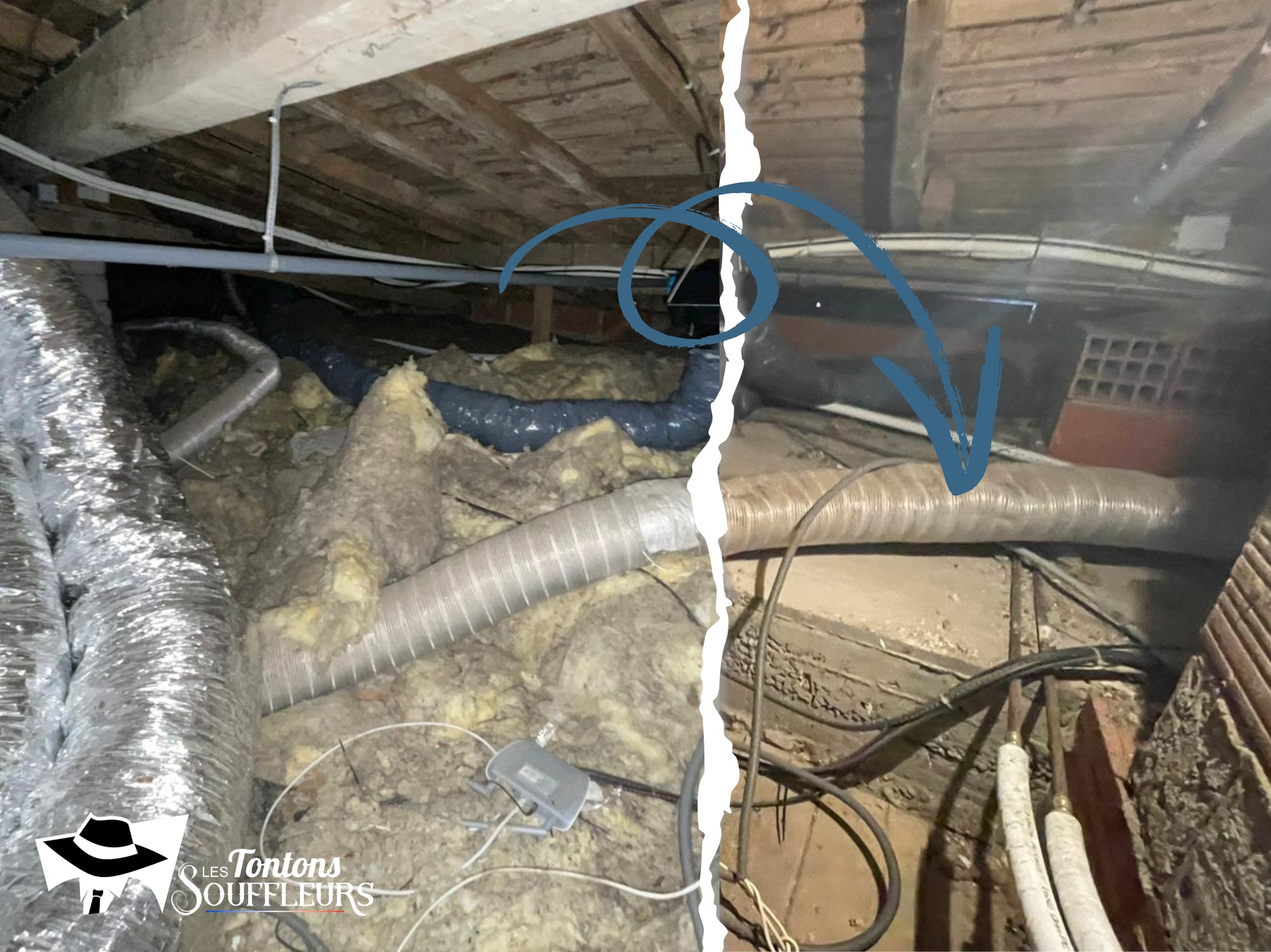 Cette étape est cruciale pour garantir une base saine avant l’installation du nouvel isolant. En supprimant les résidus de l’ancien matériau, nous avons également éliminé les éventuels ponts thermiques et assuré un environnement propre pour un travail durable et efficace.