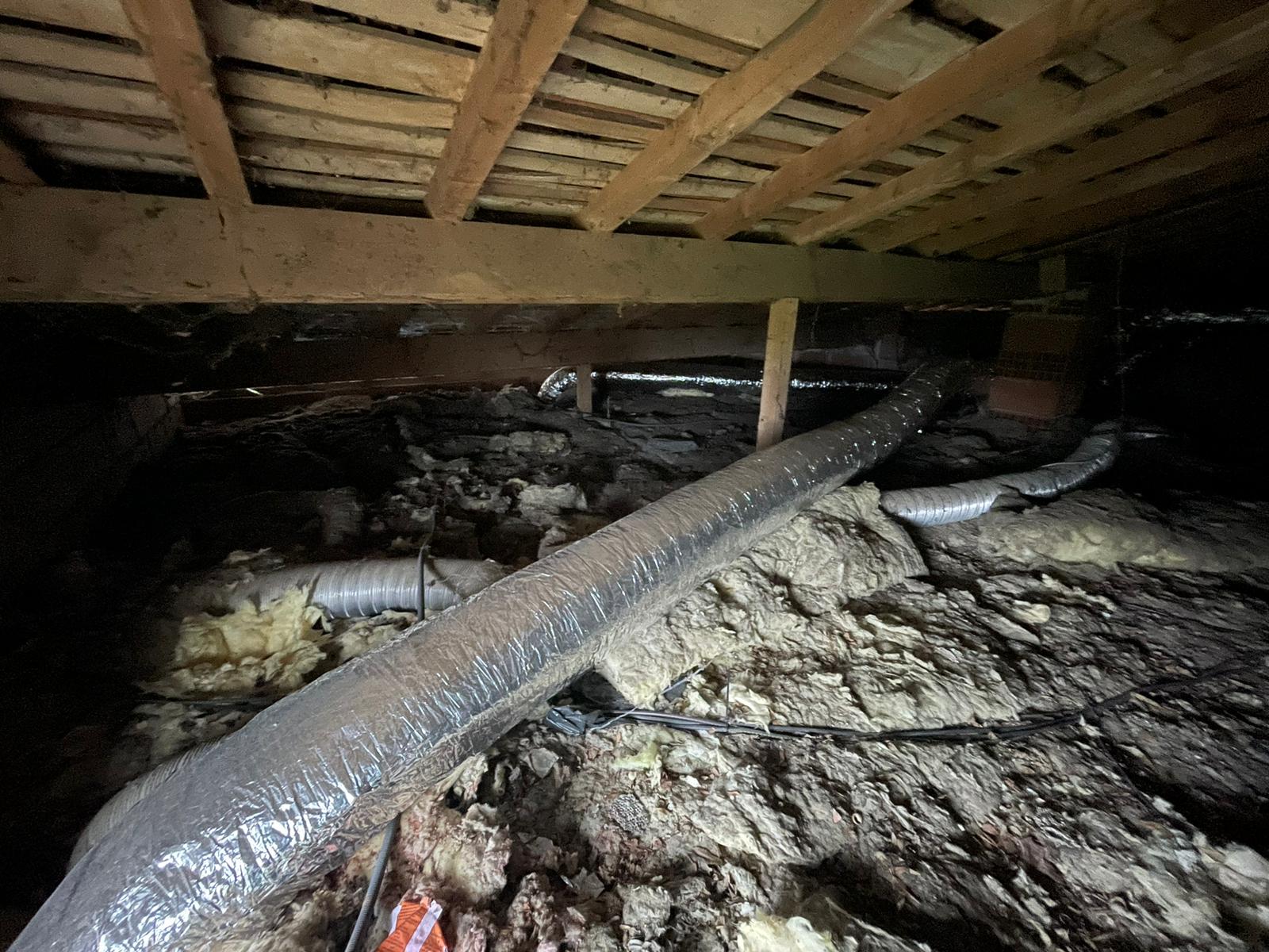 Avant d’entamer la pose de la nouvelle isolation, une évacuation minutieuse de l’ancien isolant a été effectuée. Les combles étaient encombrés d’un matériau isolant vétuste qui, avec le temps, avait perdu ses propriétés thermiques et pouvait être une source de poussières ou de parasites.