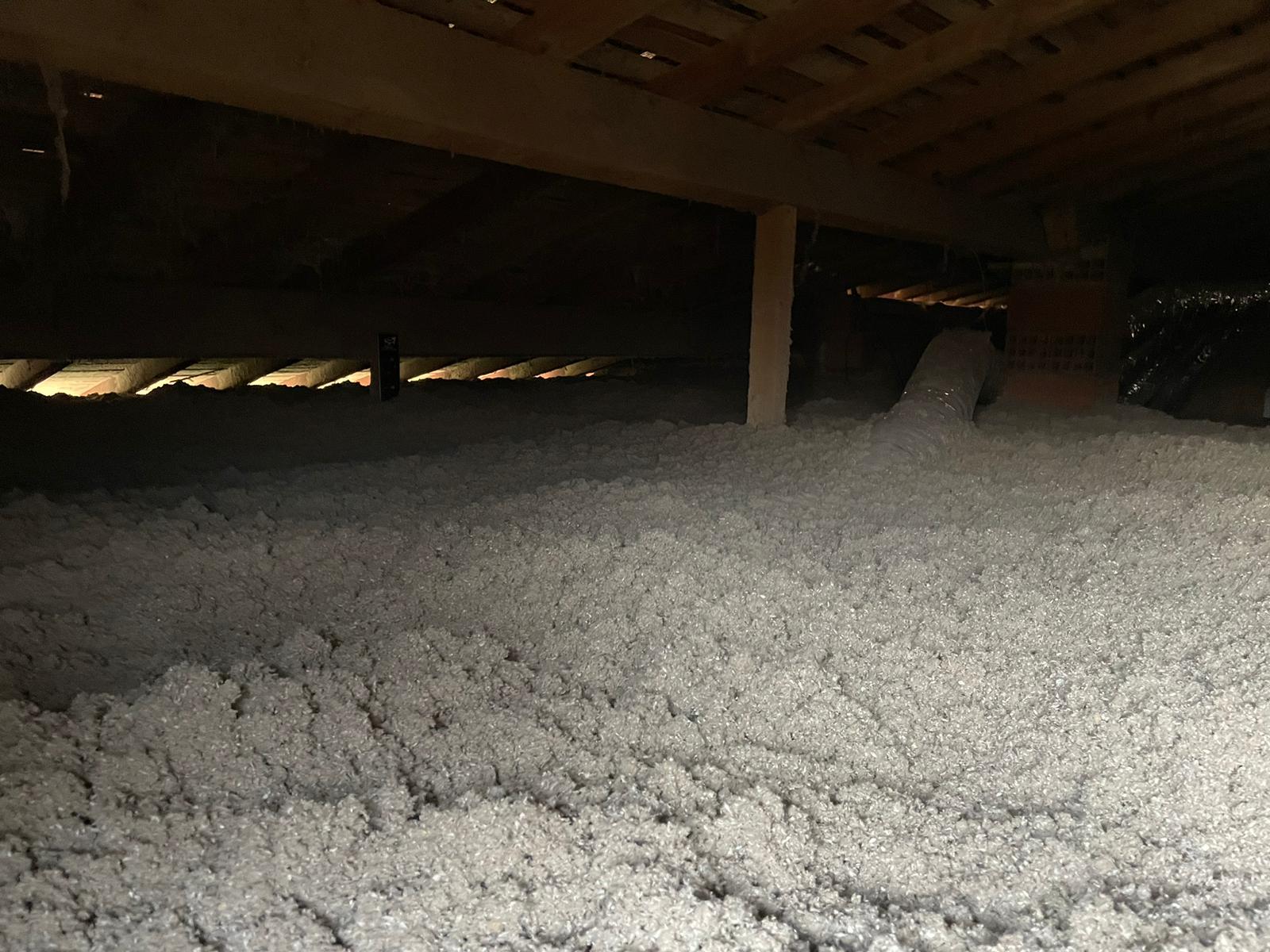 Une fois les combles entièrement nettoyés, nos équipes ont procédé au soufflage de la ouate de cellulose Igloo R7. Fabriquée à partir de papiers recyclés, cette ouate de cellulose est un choix écoresponsable, parfaitement adapté aux projets d’isolation thermique.
