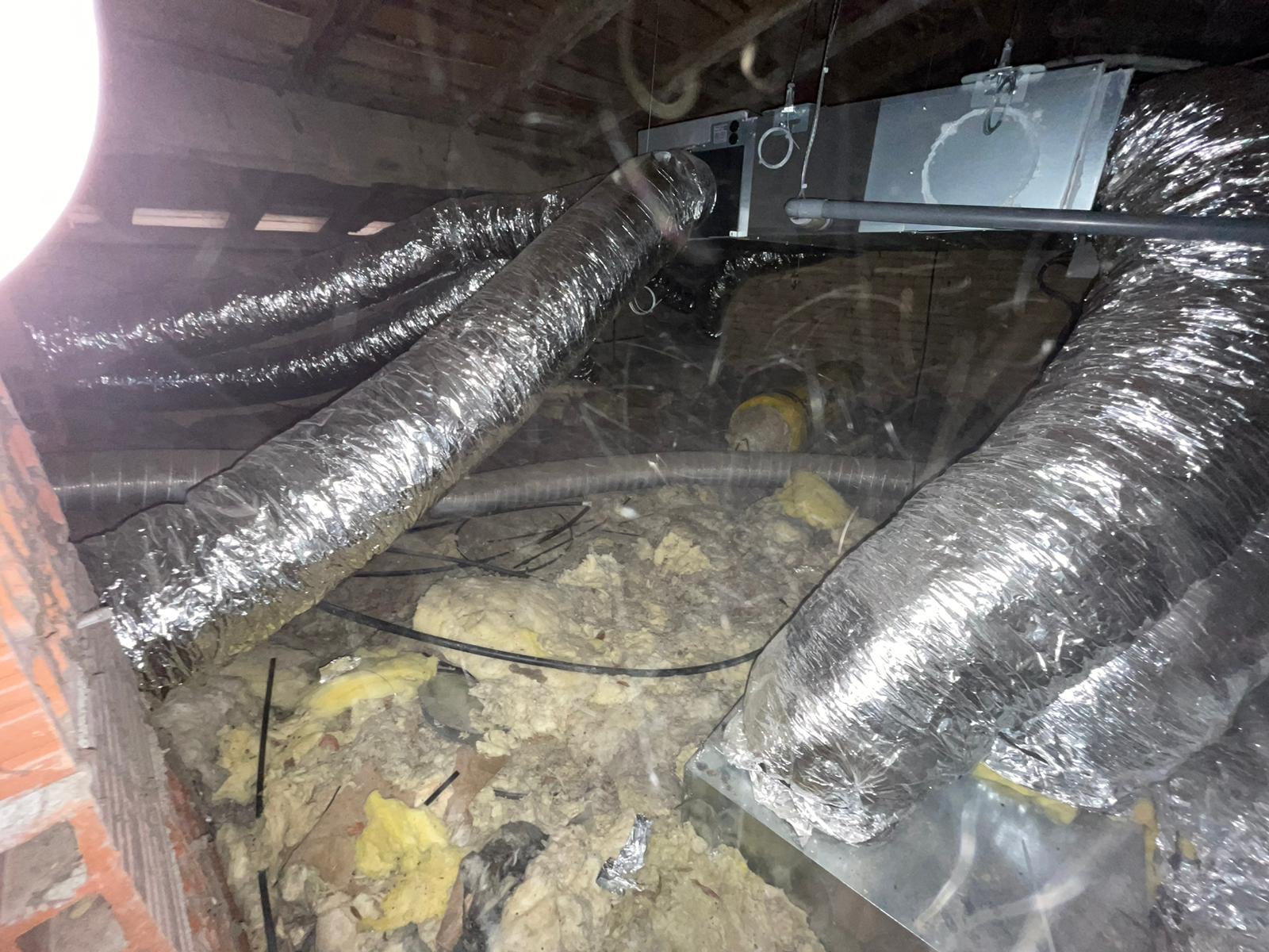 Pour mener à bien cette étape, nous avons utilisé un équipement spécialisé permettant une extraction propre et rapide. Les déchets d’isolation ont ensuite été soigneusement conditionnés avant d’être acheminés vers un centre de traitement agréé (Tryfil). Dans ce cas, les matériaux ont été envoyés à un site de traitement local respectant les normes environnementales en vigueur.